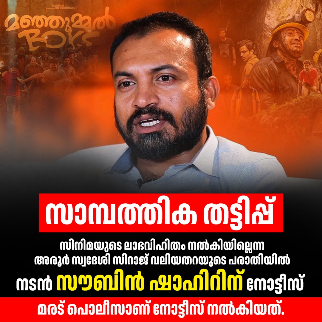 സിനിമയുടെ ലാഭവിഹിതം നൽകിയില്ലെന്ന അരൂർ സ്വദേശി സിറാജ് വലിയതറയുടെ പരാതിയിൽ സൗബിൻ ഷാഹിർ, ബാബു ഷാഹിർ, ഷോൺ ആന്റണി എന്നിവർക്കെതിരെ അന്വേഷണം ആരംഭിച്ചു. 14 …